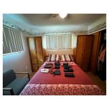 Bedrooms Queen brass Headboard, Nautical décor, Art deco style dresser with round mirror, Art deco style wardrobe. Art deco style nightstand, Westinghouse TV. Board games, Christmas décor, Kenmore sewing machine, Sony TV, Full size solid wood bed set with storage/mirrors/ overhead lights, Women's apparel and much more!