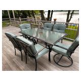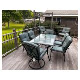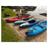 Lakeside Hobie pedal Kyacks, Zydeco Kyacks, Lawn furniture, wooden glider, Coleman portable outdoor grill, Glass and metal patio table with 9 chairs, Suncast picnic table