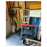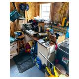 Tool Shed Yard tools, dirt devil vacuum, Radial arm bench saw, tow hitches, Round bar ez hitch, fireside outdoor pop up fire pit, outdoor basketball hoop,and much more!