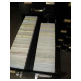 | Inventory and supplies of retired professional philatelist. A mix of US, Canadian, foreign stamps and associated philatelic items, sufficient to start your own business. Primarily labeled with Scott numbers, presented in glassine envelopes or on stock cards in binders ready to sell. Sale includes: Stamps in individual No.2 glassine envelopes, boxed, Approx. 15 linear feet. Primarily items with a 1990s catalog value of at least $0.40 each. Stamps/booklets/plate blocks in No.4 and No.5 glassine envelopes, often multiple copies, in 13 double filing cabinet drawers. More than 80 linear feet. Souvenir sheets and other larger items in manila envelopes, about 100 Letter size stock cards sheets in binders: 37 2" binders, 12 of these contain US MNH 6 3.5" binders US used/Germany Covers, post cards and postal stationary Uncatalogued items: 15 envelope boxes of stamps, stacks of loose album pages Reference books and catalogs Specialist office supplies for storing and displaying philatelic items Some Coin/ Currency collecting items Coin Collection Office furniture and general office supplies Sale will be held Wednesday evening 5pm-9pm ONLY by bid Accompanying sale of household goods will be the following days 9/17-19 |