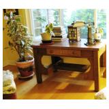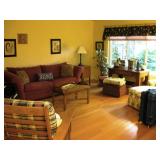 Location: 5013 Applewood Drive, Lansing, Michigan Quality Home Furnishings: Mid-Century Wisner (Ficks Reed) “Asian Modern” coffee table; Antique A&C oak desk; Antique rocker and paddle arm chair; New Barcalounger leather recliner; Like-new leather love seat; Livingroom upholstered sofas and chairs; Floor and table lighting; Drop leaf coffee table; Wall book case and bookracks; Arts & Crafts style furniture: Larkin drop front desk, revolving barrister bookcase, dining table and 4 chairs, music cabinet, sideboard, end table, nightstand… Bedroom - Kitchen: Wicker dbl bed, hampers, dresser, lounge chair; Queen bed, dresser, lamps tables; Good clean kitchen appliances and serving items; Fiesta dinner ware; Mixer; Microwave; Canister set; Flatware; Serving items and utensils; Dyson canister vacuum; 7-drawer chest; Floral day lounge…
