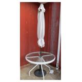 Glass Top Patio Table With Umbrella and Umbrella Stand