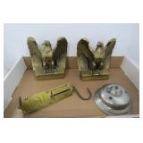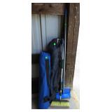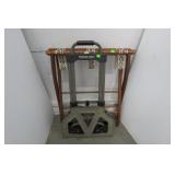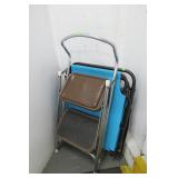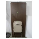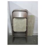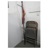 3 Metal Folding Chairs and Flag With Pole and Holder