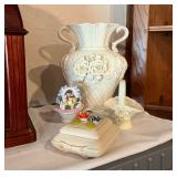 Offering: Willett dining table w 6 chairs, pads, and 1 leaf, cherry corner cabinet, tea cart, Pennsylvanina House serving table, rose medallion porcelain vases w frog lids, 2bookcase/entertainment centers- sections may be purchased separately, cherry nightstand, king size bed, queen size bed, nightstands, dressers, chest of drawers, jewelry armoire, framed prints, sturdy brass lamps, floor lamps, men's sport coats (very nice), several upholstered barrell chairs, glass top iron kitchen table w 4 chairs, Queen Anne leg upholstered chair, table lamp, Lazyboy lift chair, recliners, magazine rack side table, love seats, caned barrell chair, executive desk, leather desk chair, 2 bar stools, corning dishes, upright piano, very nice coffee table & end tables, coffee table, kitcheware, China, crystal, faux plants, Lane cedar chest, steamer, vintage laundry hamper, decorator pieces, porcelain pocket watch holder, stained glass Tiffany style lamp, barware, Maytag dryer, Whirlpool washer, yard tools, hand tools, new marble top vanity w faucet, new pedestal sink, medical equipment- walkers, rollators, canes, bath benches, etc. |