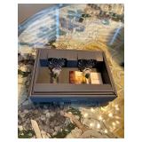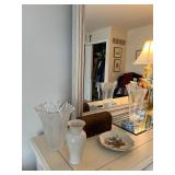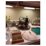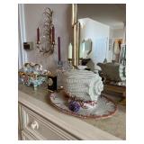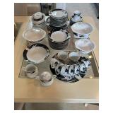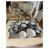 Cashout: Custom jewelry, stamps, Game BoyMain floor: American signature entryway table, contemporary octagonal mirror, Whittington grandfather clock, Stanley dining room table and chairs Stanley Buffett, fritz, and Floyd ceramics, vintage, Italian, ceramic terrine, Mikasa Annabelle China set, Lennox eclipse china set, Mikasa charisma china set, White furniture China cabinet, Waterford stemware, Waterford crystal bowls, LG 50 inch flatscreen TV, autographed 1992 University of Michigan Rose Bowl pennant, Max Home loveseat and sofa, original paintings by George Viscomi, Henry Moore style stone sculpture, female nude concrete sculpture, Lladro ceramics, stone mosaic pedestal table, set of aluminum dining chairs, wedgewood Pennine dish set, art glass vases, Royal Doutton Provehcial China set, Mikasa dish set, Italian terra-cotta dish set, contemporary, curio, cabinet, Franciscan sea sculptures dish set, white furniture, bedroom, set, chaise lounge, women’s clothing, women’s handbags, fur coats, Isamu Noguchi book by Sam Hunter, Leon Rosen mid century Consol table, Leon Rosen mid century cocktail table, original watercolors by Lumen Martin Winter, CUTCO knife set.Second floor: