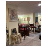 Glass top aluminum table, elephant end table, cream plush sofa, singer touch and sew, Husqvarna, Viking, sewing machine, Oak barrister bookcase, Husqvarna quilting kit, two-tier side table, queen size bed, wicker, vanity set, Bombay side table, blue wing back chair, Stanley furniture bedroom set, la-Z-Boy accent chair, Lori Kiplinger Pandy Cast Paper, table lamp, Blanco glass, signed ceramics, Dega dancer,Books, men’s and women’s clothing, leather bound jewelry box, books, hand, carved wooden cabinet, Hollywood regency Stiffel lamp.Basement: Leather recliner, Bauhaus loveseat, and sofa, Panasonic television, vintage, octagonal table, Jenn air refrigerator refrigerator, Frigidaire freezer, Vinotemp wine chiller,Gandy pool table with ping-pong table topper, contemporary octagonal kitchen table and chair set table,golf clubs supplies, books, DVDs, late century China cabinet ceramics, books, painters easels, original watercolor by Feng, art supplies, Antique trunks, bakers rack, hand woven tapestry, holiday decor, Artbooks. Garage: Outdoors: