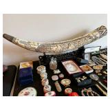 Burberry coats, fur coats, Raymond Massey signed prints, Henredon liquor cabinet, Royal Copenhagen bowl, Jules Moigniez bronze eagle sculpture, Asian room screen, antique linens, Limoges trinket boxes, Chinese Ox bone horn sculpture, costume jewelry, Citizen watches, Bulova watch, Jaroslan Kamich oil painting, dining table and chairs, Toby mug, Wedgewood Wild Strawberry China set, John Haviland China set, Tirschenreuth China set, Cuisinart Air fryer toaster oven, instapot, vintage dolls, Omega juicer, and more! Upstairs Woman’s Uggs, Men’s and Women’s clothing, Purses, bedding, Full size bed frame, vintage bedroom set, Asian planter, and more! Basement Buddha statue, books, Wild Wings Philip J Galatas decoy duck, vintage club chairs, fishing poles, rocking chair, executive desk and chair, Epson scanner, Epson XP2500 printer, Brother printer, Schwinn exercise bike, Health Rider Bike, Emeril toaster oven, luggage, fishing equipment, Lorex security system, Craftsman tool box, tools and more! Garage Patio table and chairs, Broil King grill, IQ Air purifiers, ELK lighting fixtures, yard tools, Mercury boat motor, Achilles inflatable raft and more!