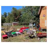 3 bikes, 1 high end Garden tools Kitchen Aid grill Live plants Wicker furniture XL terrariums Old stained glass windows Lenox china & more Lamps Butcher block rolling kitchen cart Packed kitchen Packed garage - lots NEW IN BOX Fiesta Asian collection - dolls, artwork, figurines & more Christoper Radko ornaments Curio cabinets Artwork Holiday decor GALORE Chest & dresser set Vintage Christmas items Quilts, MOST NEW IN PACKAGE Fabric Garden flags Train photos, ephemera & more Leather sofa & chair w/ottoman Oak (Mission style) armoires & cabinets Railroad lanterns & more NEW IN BOX small kitchen appliances Stihl rototiller Side by side fridge Vera Bradley collection Basket collection MOORE!!! |