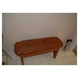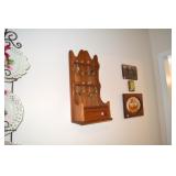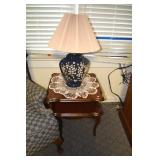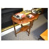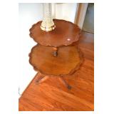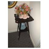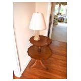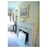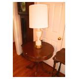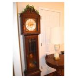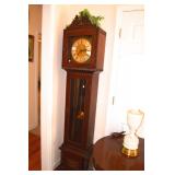 Foyer: Antique Side Table, Grandfather Clock, Antique Round Side Table, Rug, Art.