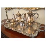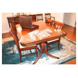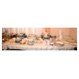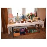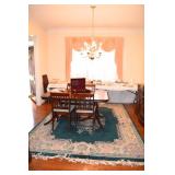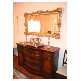 Dining Room: Dining Room Table and 6 Chairs , Mahogany China Cabinet, Mahogany Sideboard, Silverplate, Flatware, Glassware, Smalls, Brass, Collectibles, Mirror, Art, and Much More.
