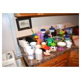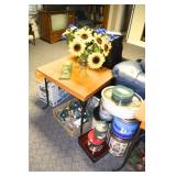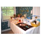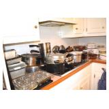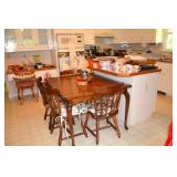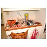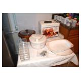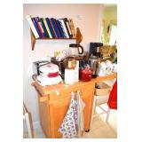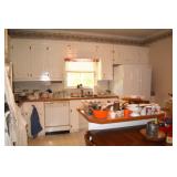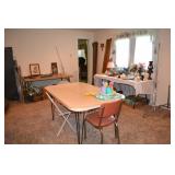 Kitchen: Kitchen Table and Chairs, Small Rolling Table, Bakeware, Bread Machine, Small Appliances, Tupperware, Cutlery, Refrigerator, and More.
