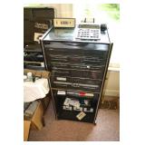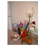 Family Room: Loveseat, Desk, Stereo Cabinet, Bookcase, Books, Tapes, VCR Tapes, Art, Plants, and More.