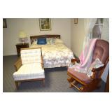 Bedrooms: Queen Size Headboard with Frame, 1930's Full Size Antique Headboard and Footboard, 1930's Wardrobe, Cedar Chest, Full Size Bed with Wicker Headboard, TV, Woman's Clothing, Purses, Linens, Quilts, Misc Vintage, Dressers, Chest of Drawers, Side Chairs, Wheelchair, Lots of Bathroom Accessories, and More.