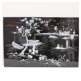 Black Laquer Inlaid Mother of Pearl Wall Art Panel