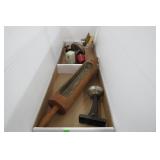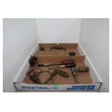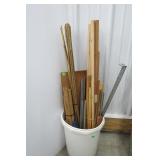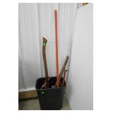 Small Trash Can With Wooden Tool Handles and Tool Heads