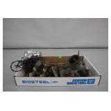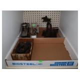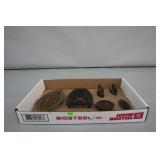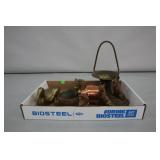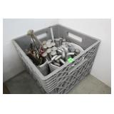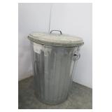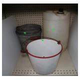 Plastic Trash Can With Miscellaneous Metal and Galvanized Pieces