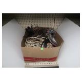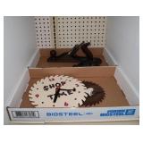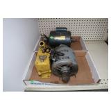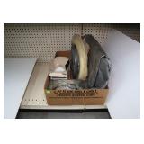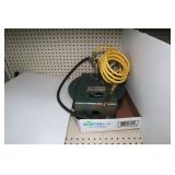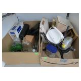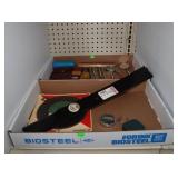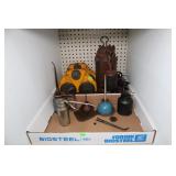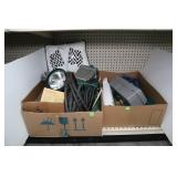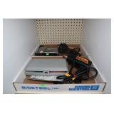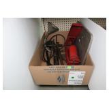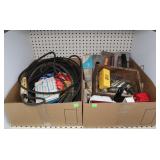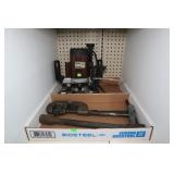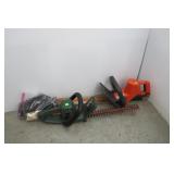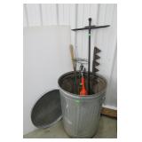 Metal Trash Can With Electric Hedge Trimmer and Miscellaneous