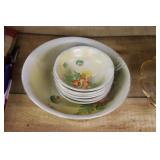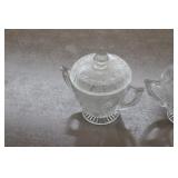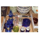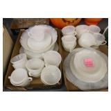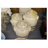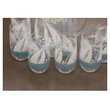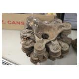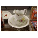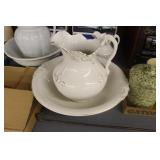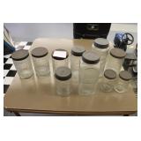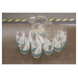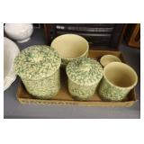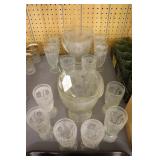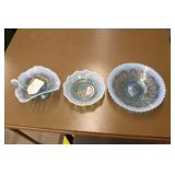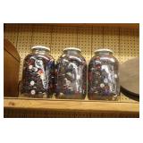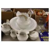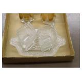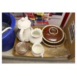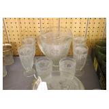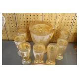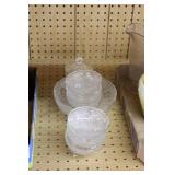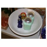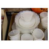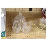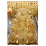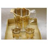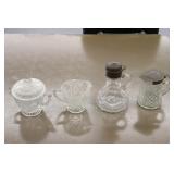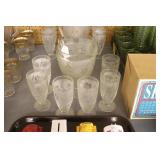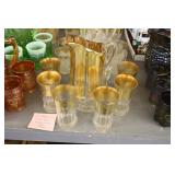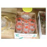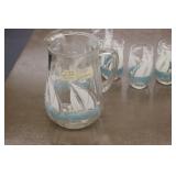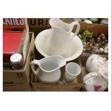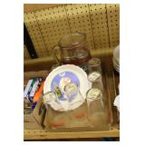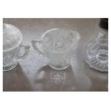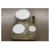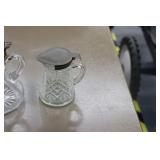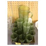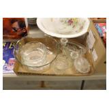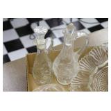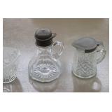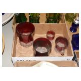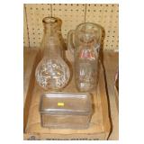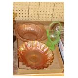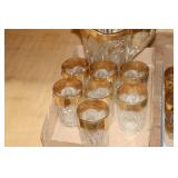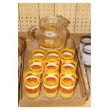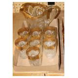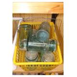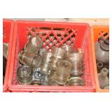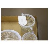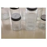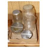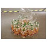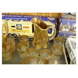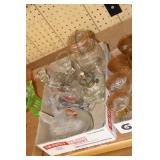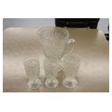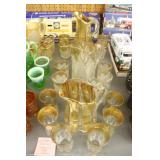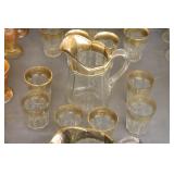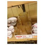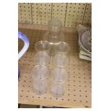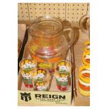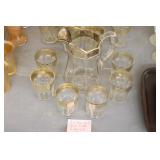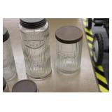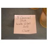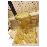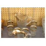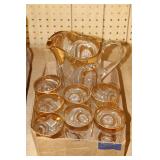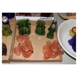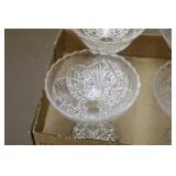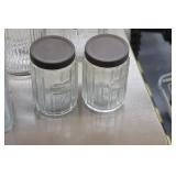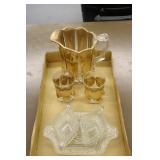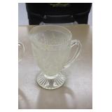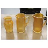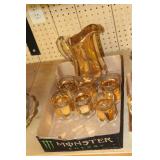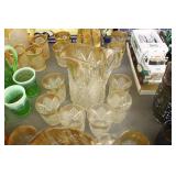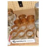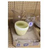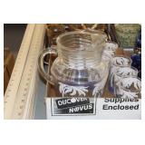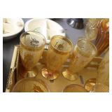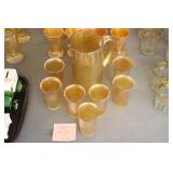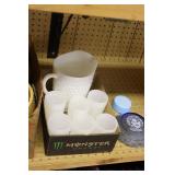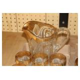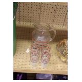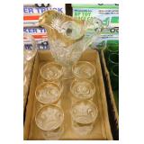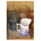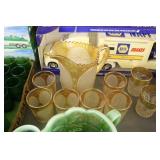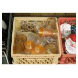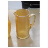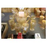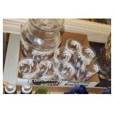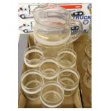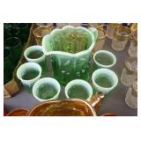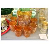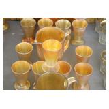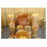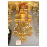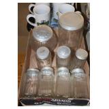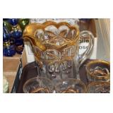 Antique Glassware: Large Amount of Carnival and Other Pitcher and Water Glass Sets, Water Glass Sets in Wire Carriers, Kitchen Cabinet Jars, and Other