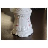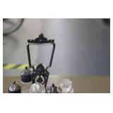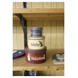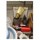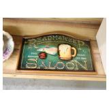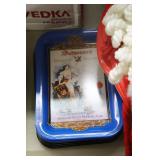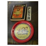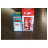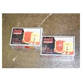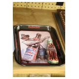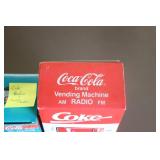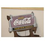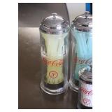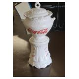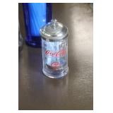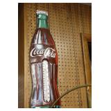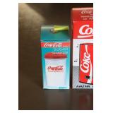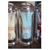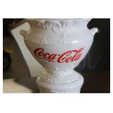 Coca Cola Collectibles: Straw Jars, Lamps, Wooden Display Shelf, Advertising Trays, and Other
