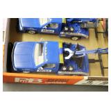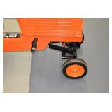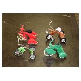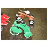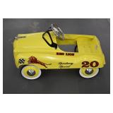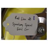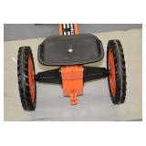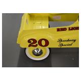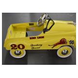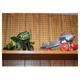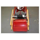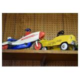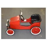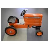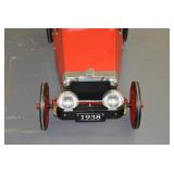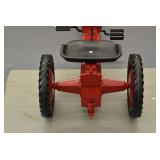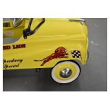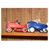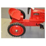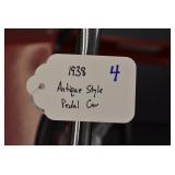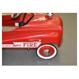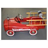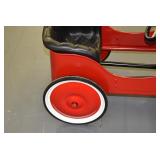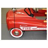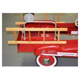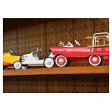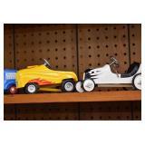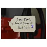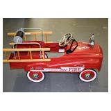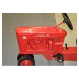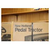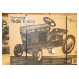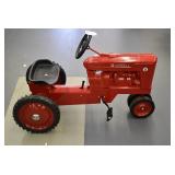 Pedal Tractors and Cars: Ertl New Holland TM165 Pedal Tractor, Scale Models Farmall Super M Pedal Tractor, Scale Models Kubota M9000 Utility Special Pedal Tractor, Ertl Farmall F-20 Pedal Tractor, Pursuit Pedal Airplane (Unassembled w/Parts, No Hardware), Red 1938 Antique Style Pedal Car, Green 1939 Antique Style Pedal Car, No. 281 Fire Department Pedal Car, and Red Lion Speedway Special Pedal Car