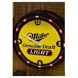 Neon Wall Clocks: (2) Miller Genuine Draft Light, Miller Lite, Lite Miller, Craftsman, Lite Ice, and Molson