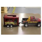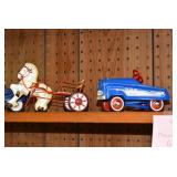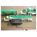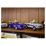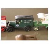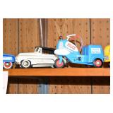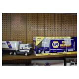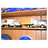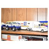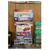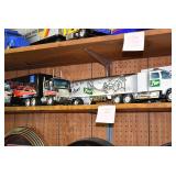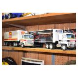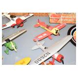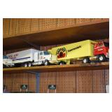 Advertising and Other Toys: (8) Miniature Pedal Airplanes, (7) Various Toy Trucks, (14) Various Advertising Tractor Trailers, (16) NAPA Trucks, (2) Fire Engines, (9) Miniature Pedal Cars, (14) Various Model Airplanes, Miniature Toy Tractors, Toy Car Banks, Miniature Metal Toy Stoves, Hess Trucks, and Other