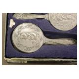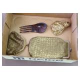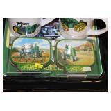 Other Antiques and Collectibles: Stand-Up Brass Bird Cage, (3) Store Vintage Manikins, Vintage Baby Carriage, Various Sized Pottery Crocks, Ladies Fur Coats, Ladies Purses, Animal Hides, Remington Ammunition Boxes, Advertising Trays, (12) Novelty Road Signs, (9) Advertising Thermometers, Iron Hooks and Stars, John Deere, Ford, Case, Farmall, Texaco, Allis Chalmers, and Other Tin Signs, Sad Irons, Galvanized Tubs, Copper and Brass Items, Childs Baby Warming Dishes, 92” Long Sleigh Bells, Unique Wooden Wagon, Vintage Radios, Old Bottles, Oil Lamps, and Other