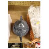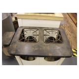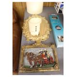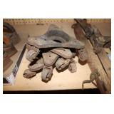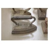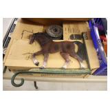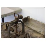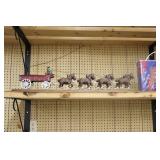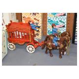 Castware: Cast Double Horse and Wagon, (8) Wagner Cast Fry Pans, Large Cast Cow, Large Cast Pig, Cast Trivets, and Other