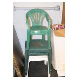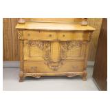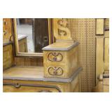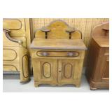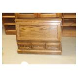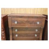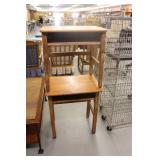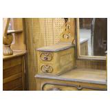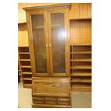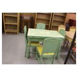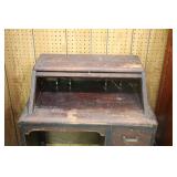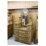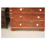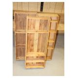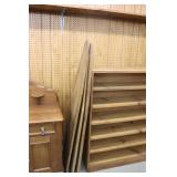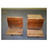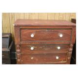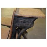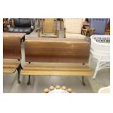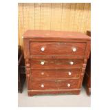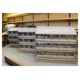 Furniture: (4) Single and Double Seat School Desks, Folding Bench, Rocking Chairs and Gliders, Oak Buffet w/Mirror Back, Cottage 3pc. Bedroom Suit, Softwood Washstand, (4) Oak Adjustable Shelf Shelving Units, Green Porcelain Top Table w/4 Chairs, Cottage 5pc. Dining Room Set, (3) Empire Chests of Drawers, (7) Large Wood Crates, Red Chimney Cupboard, (4) Store Racks on Wheels, Leather Love Seat, (2) Softwood Shelf Units, (2) Wicker Chests, and Other