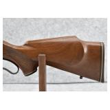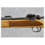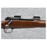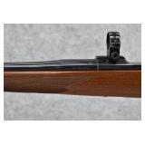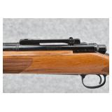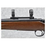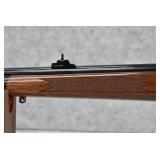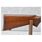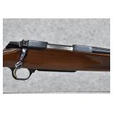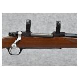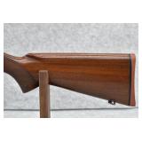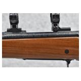 41. Ruger – Mod. 77 RSI International Tang Safety – 243 Win. Cal. Bolt Action Rifle – w/18 ½” Barrel w/Blade Front & Flip Up Rear Sights – Blued Finish – w/Deluxe Checkered Capped Pistol Grip Full Length Mannlicher Wood Stock – w/Factory Butt Pad – w/Ruger Factory Scope Rings