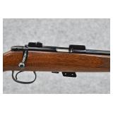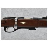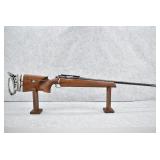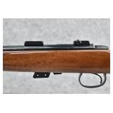33. O.F. Mossberg – Mod. 144 LSA – 22 Cal. Bolt Action Rifle – w/26” Barrel w/Hooded Front & Factory Mossberg Peep Sight (Missing Peep) – Blued Finish – w/Pistol Grip Wood Target Stock w/Factory Butt Plate & Palm Stop Rail – w/Mag – w/Scope Rings