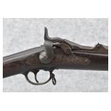 UUU. U.S. Springfield – Mod. 1866 2nd Model Allin Conversion Trap Door – 50-70 Cal. Trap Door Rifle – w/31” Barrel w/Modified Blade Front & 2 Leaf Rear Sights – Gray/Brown Finish – w/Straight Grip Full Wood Stock w/3 Bands & Metal Butt Plate – w/Cleaning Rod – Lock Dated 1864