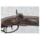 A. Ken Bresien Custom – David Decker Percussion Half Stock – 45 Cal. Black Powder Percussion Rifle – w/27” Octagon to Round Barrel w/Beech Combination Front & Large Disc Adjustable Rear Tang Peep Sights – Case Colored/Brown Finish – w/Highly Engraved Lock Plate, Hammer, Barrel Ends, Trigger Guard, Pistol Grip Cap & Butt Plate – w/Deluxe Checkered Capped Pistol Grip Wood Stock w/Raised Cheek Piece & Metal Butt Plate