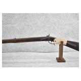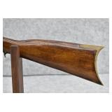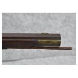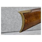 RRR. Unknown Maker – 44 Cal. Full Stock Percussion Black Powder Rifle – w/38” Octagon Barrel w/Blade Front & Buckhorn Rear w/Snake Slithering Out of Sight – Brown Finish – w/Straight Grip Full Wood stock w/Brass Patch Box & Furniture w/Metal Butt Plate – No Markings on Lock or Barrel – w/Ram Rod