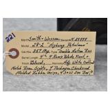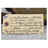 74. Army & Navy C.S.L. – Hammerless Box Lock – 12ga. 2 ½” Double Barrel Shotgun – w/30” IM/Cyl. Bore Choke, Solid Rib Nitro Reproved Barrels – Blued/Gray Finish – w/Engraved Frame, Trigger Guard, Lock Bar & Rear Tang – Barrel Rib Engraved “ARMY & NAVY C.S.L. LONDON” – w/Deluxe Checkered Straight Grip Wood Stocks – Gun Weighs 6lbs, 6oz. – w/Original Canvas & Leather Case w/Cleaning Rods & Accessories – Circa 1910