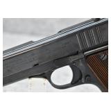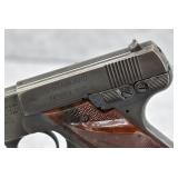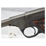 77. Colt – Mod. The Woodsman “Pre War” – 22LR Cal. Semi-Auto Pistol – w/6 5/8” Barrel w/Blade Front & Adj. Rear Sights – Strong Blued Finish – w/Colt Checkered Wood Grips – w/Colt Factory Two-Tone Detachable Magazine – Mfg. in 1936