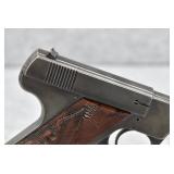 82. Colt – Mod. Automatic Pre-Woodsman – 22LR Cal. Semi-Auto Pistol – w/6 5/8” Barrel w/Adj. Blade Front & Rear Sights – Excellent Blued Finish – w/Checkered Walnut Grips – w/Colt Factory Two-Tone Detachable Magazine – Mfg. in 1927
