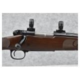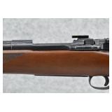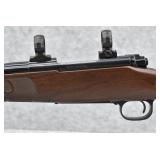 44. Winchester – Mod. 70 Featherweight (Pre-64) – 308 Win. Cal. Bolt Action Rifle – w/22” Barrel w/Hooded Front & Flip Up Rear Sights – Blued Finish – w/Deluxe Checkered Pistol Grip Wood Stock w/Factory Checkered Aluminum Butt Plate – Mfg. in 1954 – Excellent Example!! – As New!