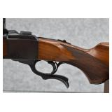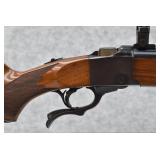 7. Ruger – Mod. No. 1-A Light Sporter – 270 Win. Cal. Single Shot Rifle – w/22” Barrel w/Gold Beaded Front & Flip Up Adj. Rear Sights – Blued Finish – w/Checkered Capped Pistol Grip Wood Stock w/White Line Recoil Pad & Alexander Henry Forearm – Quarter Rib w/Ruger Rings – w/Factory Box