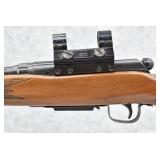8. Ruger – Mod. Mini 14 – 223 Rem. Cal. Semi-Auto Rifle – w/18 ½” Barrel w/Blade Front & Adj. Rear Peep Sights – Stainless Finish – w/Pistol Grip Wood Stock w/Plastic Butt Plate – w/Leather Sling – w/B-Square Side Mount Scope Mount – w/Factory Box