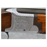 52. Winchester – Mod. 12 (Upgraded to Skeet) – 28ga. Pump Action Shotgun – w/26” Skeet Choke, Vent-Rib Barrel w/Bead Sight – Blued Finish – w/#12-3 Pattern Engraving on Sides of Receiver w/Pointer & Floral Scrolling on Right Side & 3 Ducks & Floral Scrolling on Left Side – w/Deluxe Checkered Capped Pistol Grip Highly Figured Wood Stocks w/Factory Plastic Butt Plate – Mfg. in 1946 – A Must See