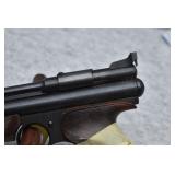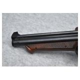 77. Colt – Mod. The Woodsman “Pre War” – 22LR Cal. Semi-Auto Pistol – w/6 5/8” Barrel w/Blade Front & Adj. Rear Sights – Strong Blued Finish – w/Colt Checkered Wood Grips – w/Colt Factory Two-Tone Detachable Magazine – Mfg. in 1936
