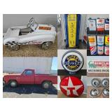 = Tonka Truck Has A Broken Windshield And Grill = Wheel Roll = Vintage Car Missing Back Wheels = Tow Truck With Car = Christmas Semi With Working Sound = More