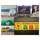= Atlas Batteries = 20" L x 10.5" H = Metal = One Sided = Transcraft = 21" L x 7" H = Tin = One Side
