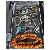 Cashout: Amber jewelry, native turquoise silver bracelet, AVI Soffer jewelry, fine sterling silver jewelry, Vrba brooch, Trifari necklace, benedikt ny brooch, nolan miller brooch, Swarovski Crystal brooch, Victor Yurivilca sterling pendant, Butcher pocket watch, costume jewelry, Ferentina perfume, Chanel number five, wrist watches.