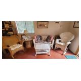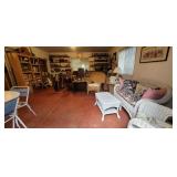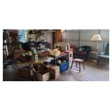 First Floor Antique Singer sewing machine, Antique table, precious moments figurines, white loveseat, End tables, Framed Paul Whitney Hunter birds, MCM Bar cabinet with lock, Oval Dining room table with 4 chairs, Traditions Fine China set-Johann Haviland Bavaria Germany, Vintage Style House Acardy China, Large antique cabinet, solid wood corner cabinet, Panasonic microwave, toastmaster toaster oven, Windsor melmac USA bowls/serving trays Amber glass, MCM metal bread box, Ball Mason jars blue, Chicken decor, cookie jars, blue and white Umbrella Stand, Wooden ducks, solid wood couch, solid wood couch, solid wood love seat, solid wood chair with ottoman, Merlin, copper sailboats, vintage Schwinn exercise bicycle, space heaters, Wooden desk, Kodak electric 8 zoom camera, Argus 4 inch projection anastigmat f 3.5, Focal binoculars, Simon slide viewing system, Wood desk, Wicker tables, lawn ornaments Second Floor Quilts, dressers, women's clothing, rabbit figurines, rocking chair, vintage Better Homes and gardens magazines, Drive walker, vintage Barbie dolls, dollhouse, luggage, country home decor, Monopoly, Clue, Scrabble, vintage dresses, Vintage Lilly Pulitzer dress, vintage Disney store stuffed animals, photo albums, painted cabinet, and more! Basement Glider chair, wood bench, iron patio table, Ball Mason jars, Coleman coolers, Sears camping light, saws, Craftsman vice, Sears metal tool box, Guardian Power drill press, Hoosier cabinet, drafting table, hurricane lamps, and more! |