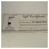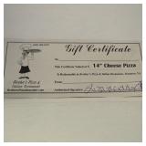 Certificate for 1 large Cheese pizza Lexington VA 351