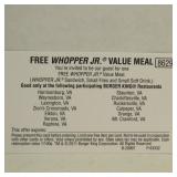 Certificate for 1 free Bloomin Onion Exp 1-1-27 Harrisonburg VA 338