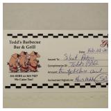 Todd's Barbecue Bar and Grill $20 certificate