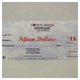 Tony's Pizza $15 gift certificate